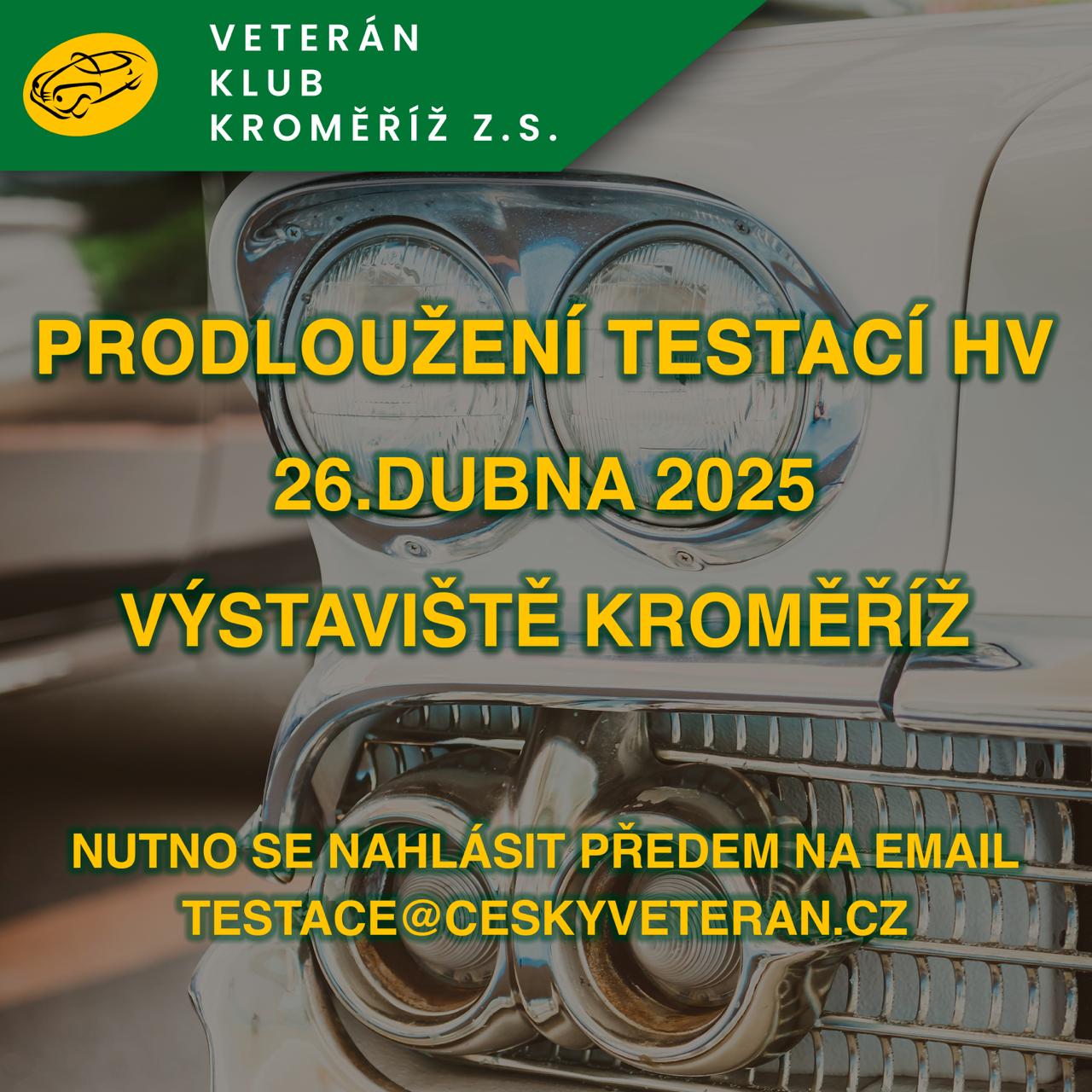 Termín 26.4.2024 od 8:00 hod na Výstavišti v Kroměříži.Tento termín je určen pouze pro vozidla, která již byla dříve testována a testaci potřebují pouze prodloužit na další období.